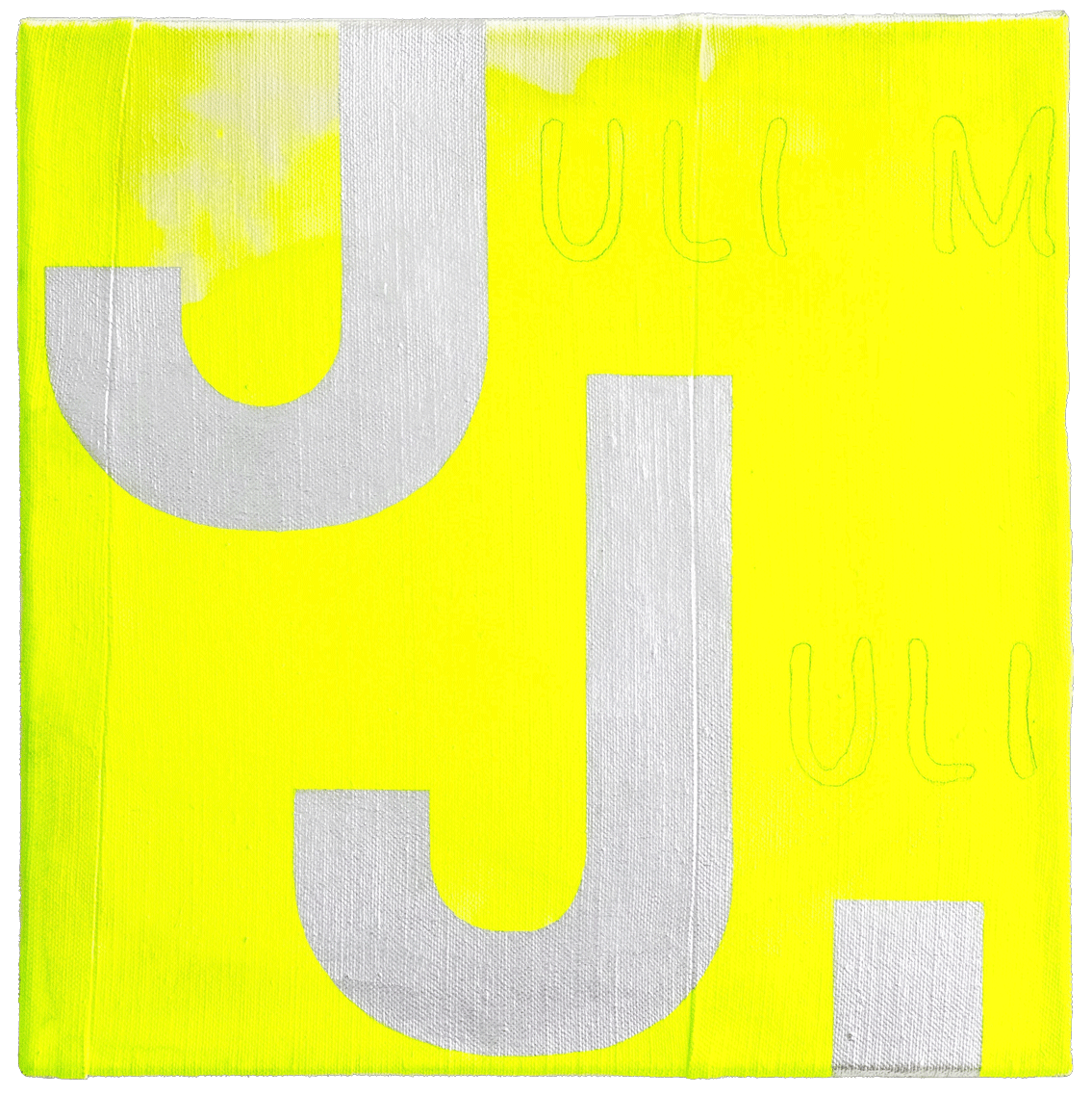 Intensivkurse 2024 No3, Acrylic on canvas and fabrics, 100 x 100cm