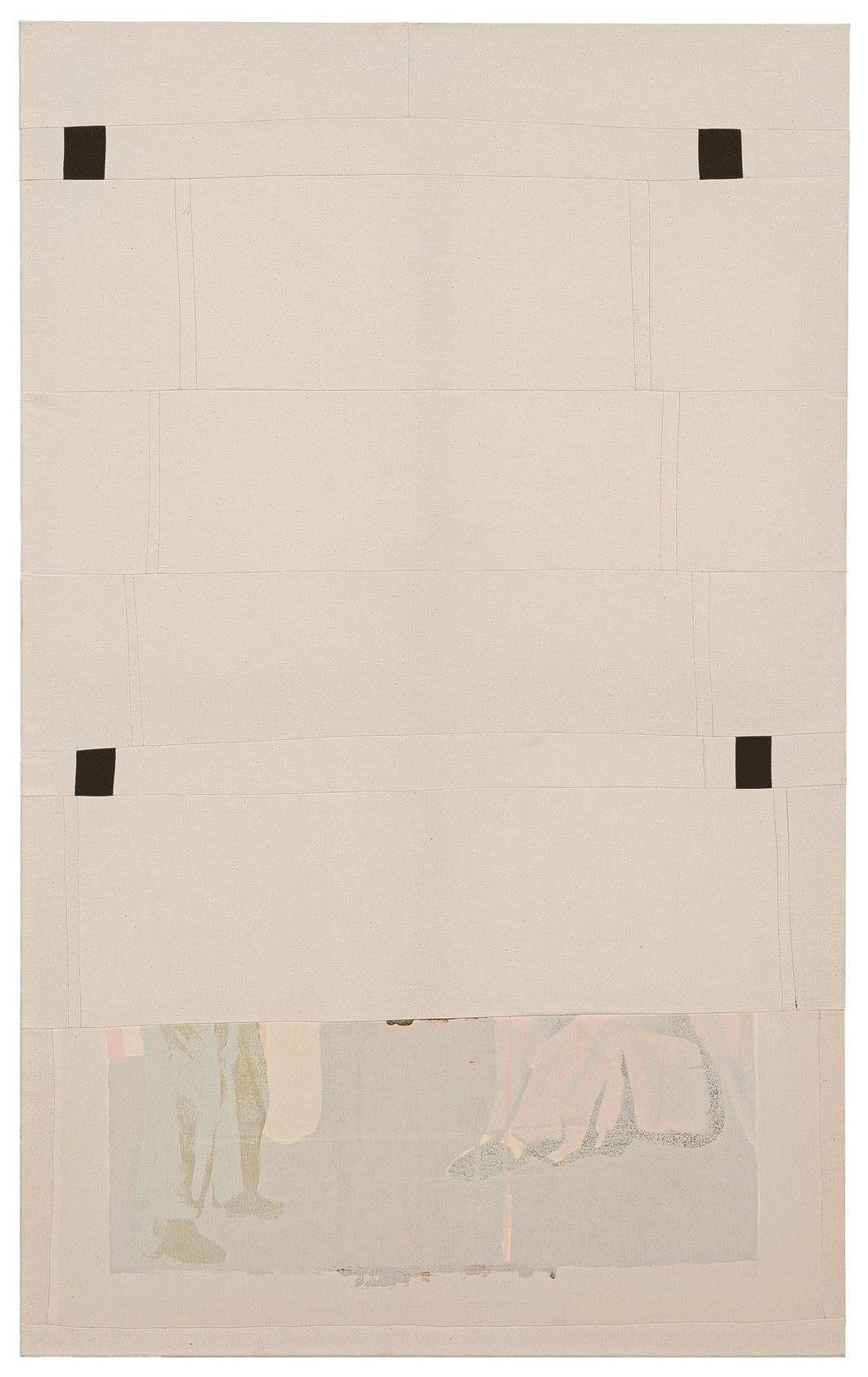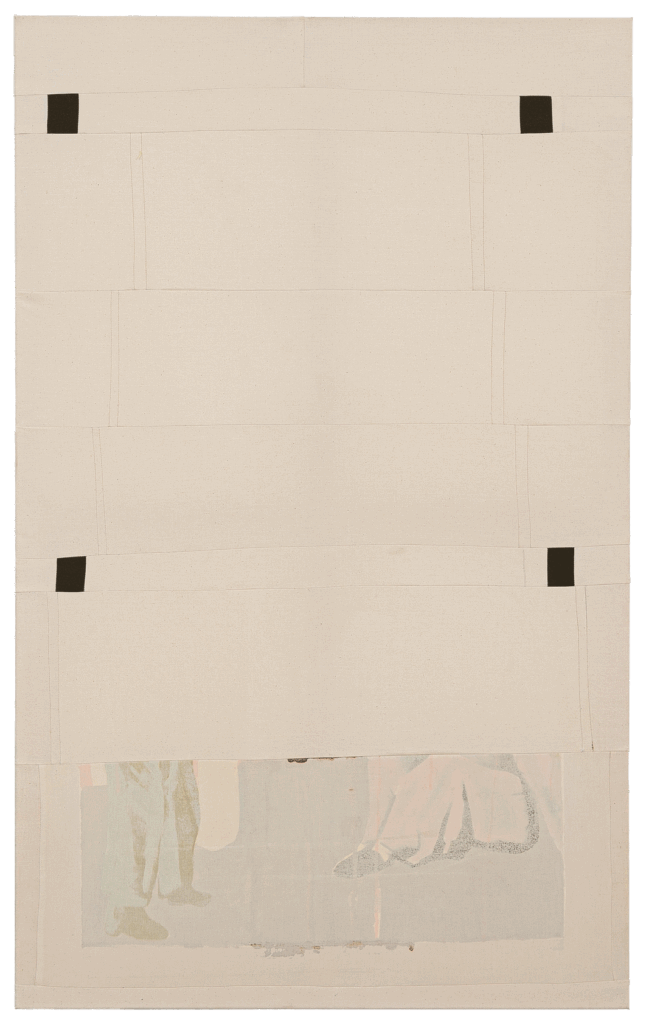 »Registration Mark« 2023, Oil and acrylic with fabric on canvas, 145 x 90cm